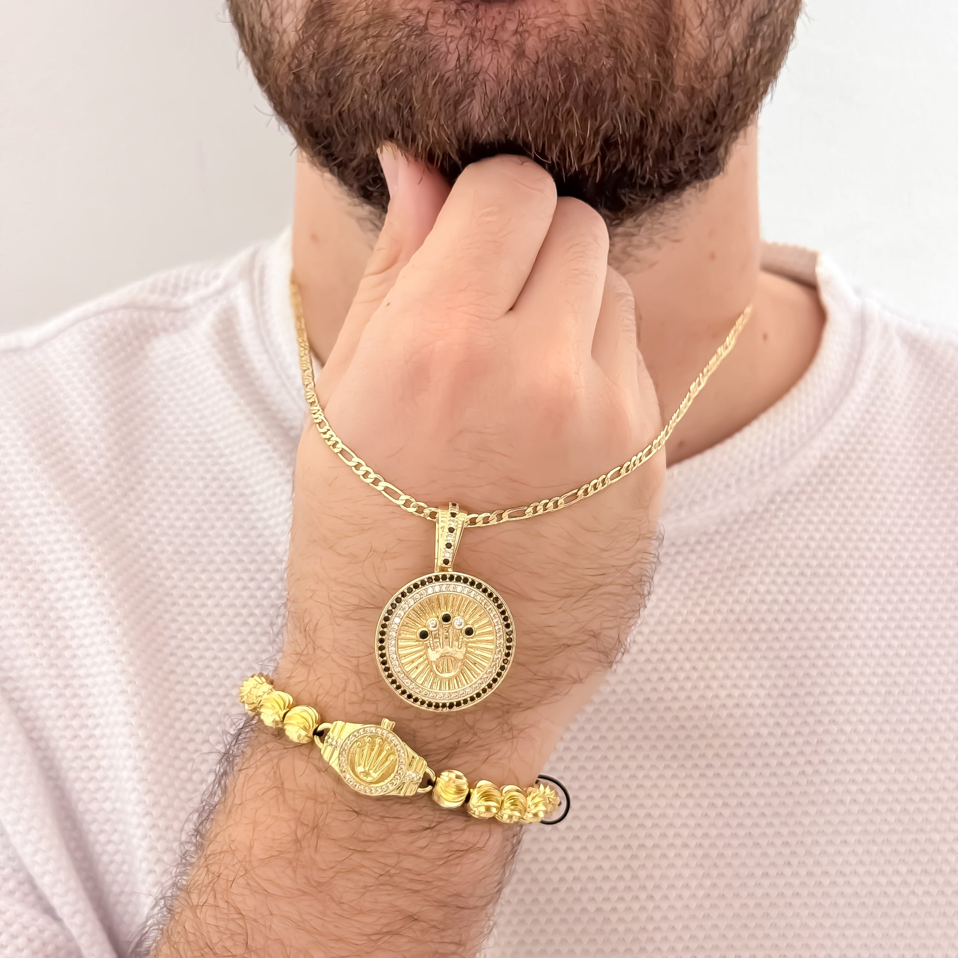 Un hombre con joyas Rolex en oro laminado 18K luce inolvidable. Este conjunto es más que un accesorio: Es tu tarjeta de presentación en reuniones, fiestas y negocios. Te da confianza, respeto y admiración. Refleja tu estilo de vida de lujo y éxito, sin pagar una fortuna..