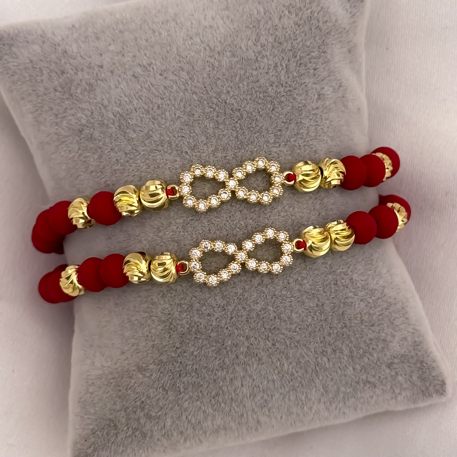 Par de Pulseras Para Parejas con Herraje de Infinitos con Micro Circones en Balin Italiano en Oro Laminado 18k con Garantia de por vida