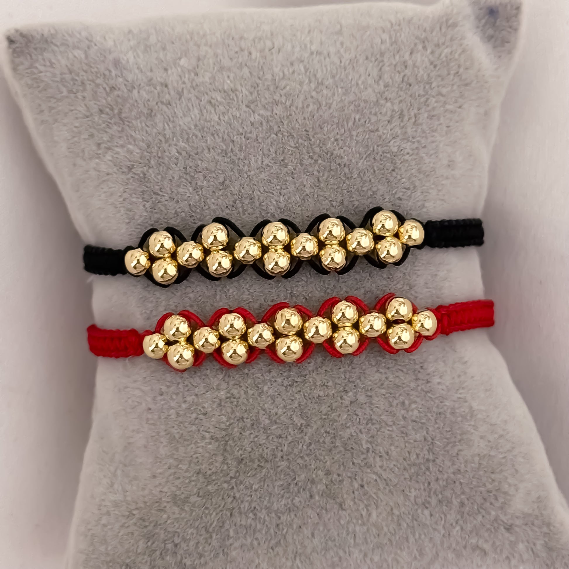Pulseras Rojas - Negras con Balines de 6mm Diamantado en Oro Laminado 18K: Símbolos de Amor y Unión