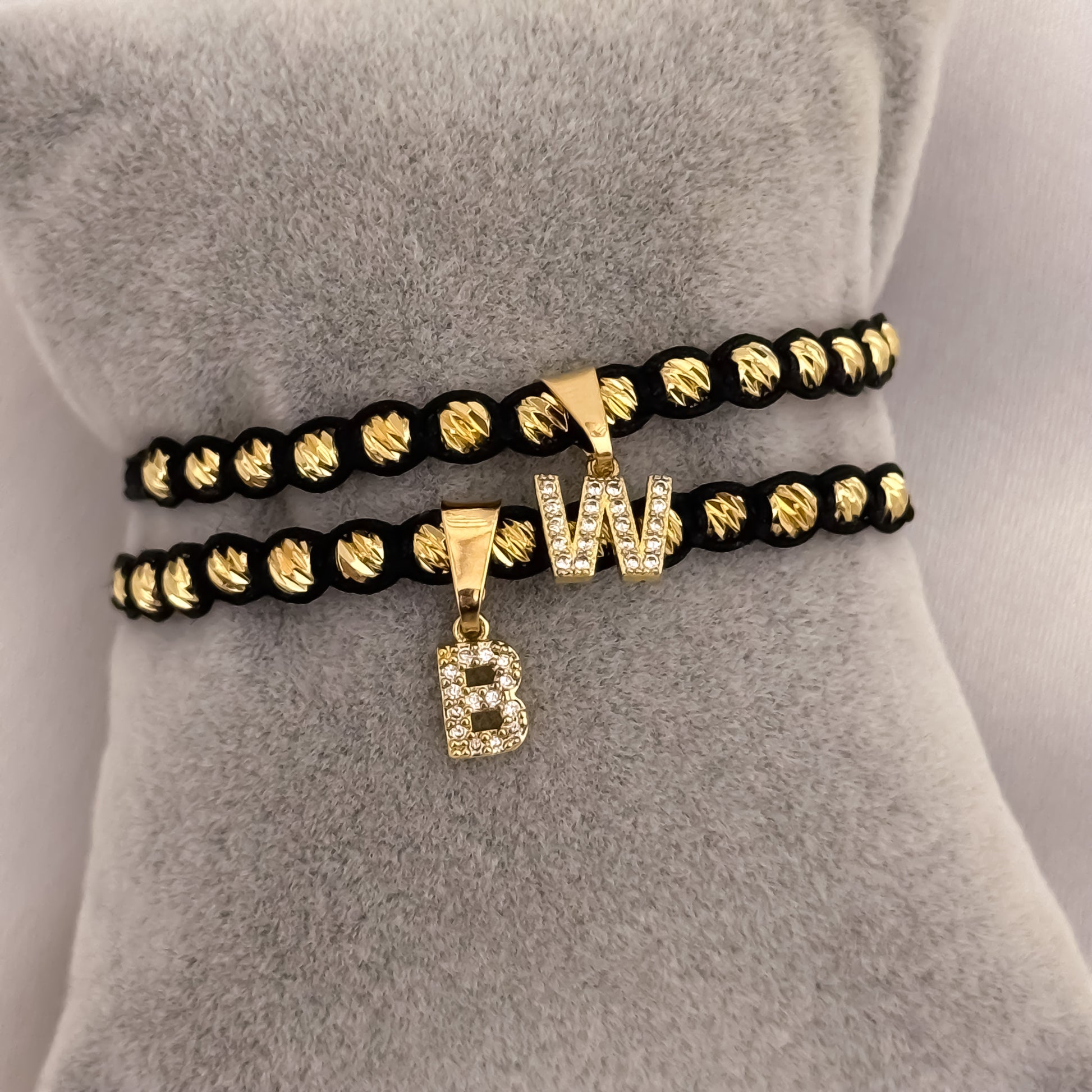 Promoción de 2 Pulseras para Parejas en Balin Italiano 4mm con Letras Inicial con Micro Circones Cristales en Oro Laminado 18k con Garantía de por vida